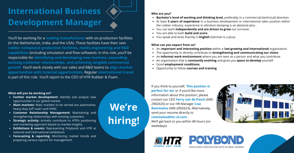 Werken bij HTR betekent dan ook een interessante en afwisselende baan in een kwaliteitsgerichte werkomgeving, met eigen verantwoordelijkheden en de vrijheid om je functie zelf invulling te geven. Je bent onderdeel van een team van gedreven mensen, die passie hebben voor de producten die wij voor onze klanten ontwikkelen en produceren.